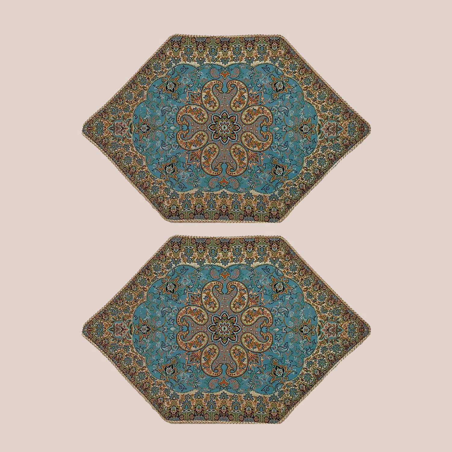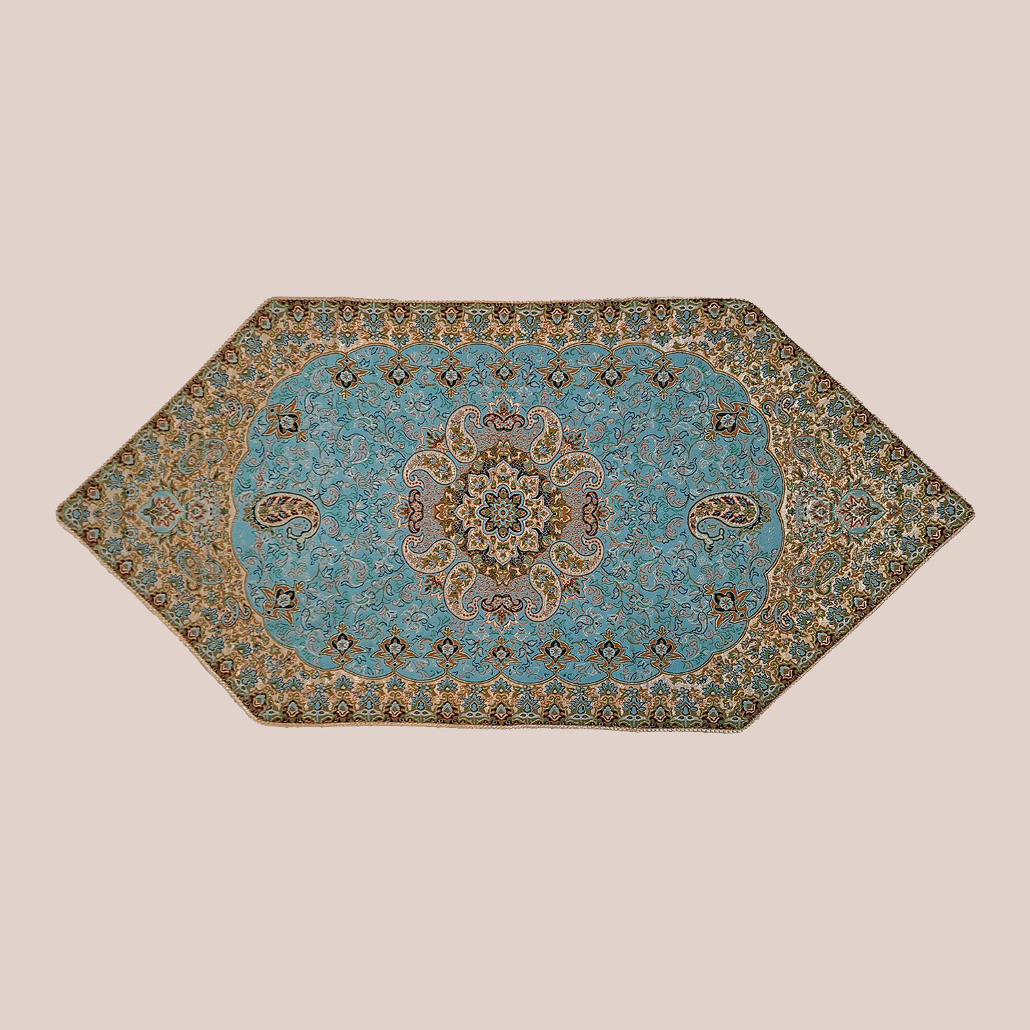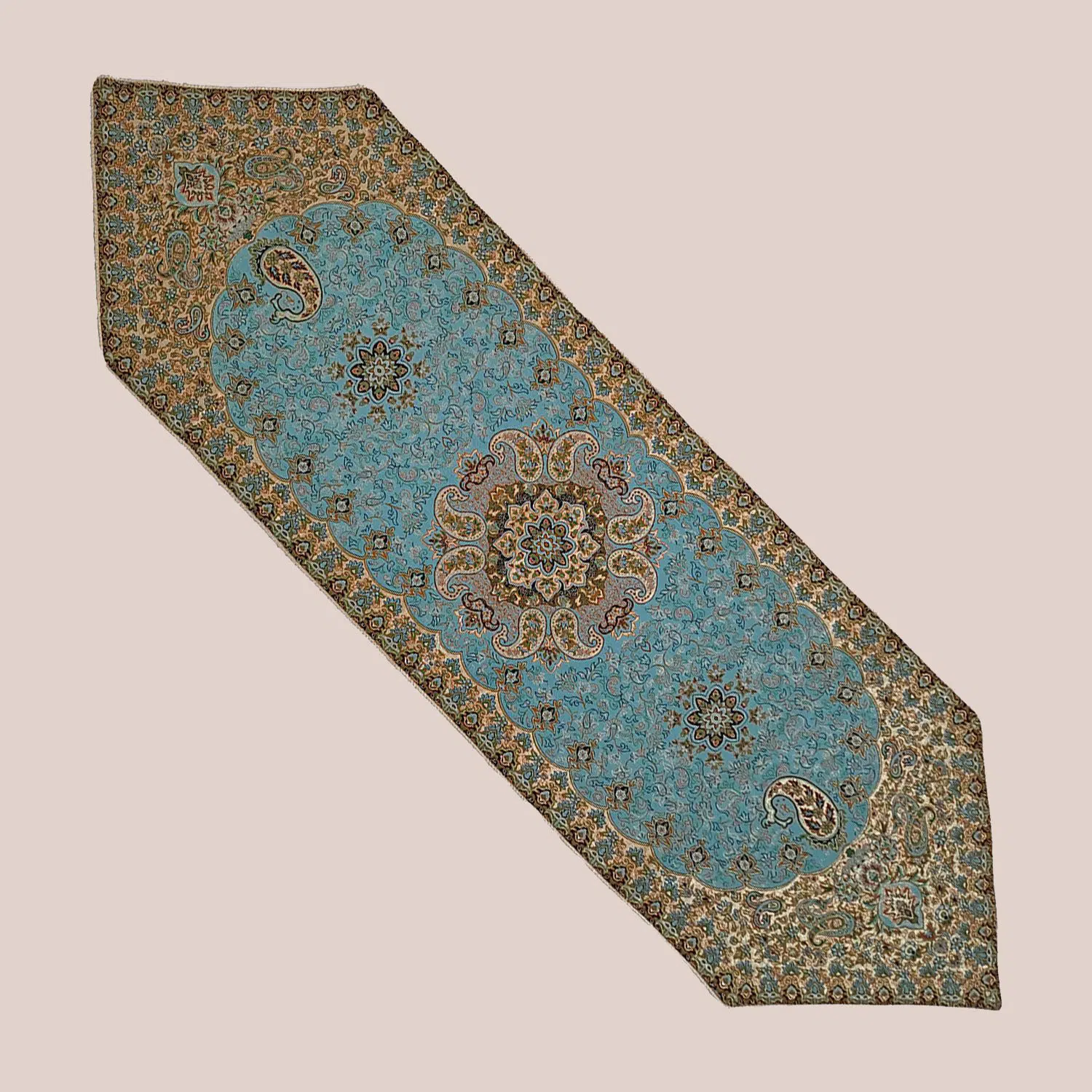 سرویس رو میزی ترمه 5 تکه سبزآبی روشن – کد 007